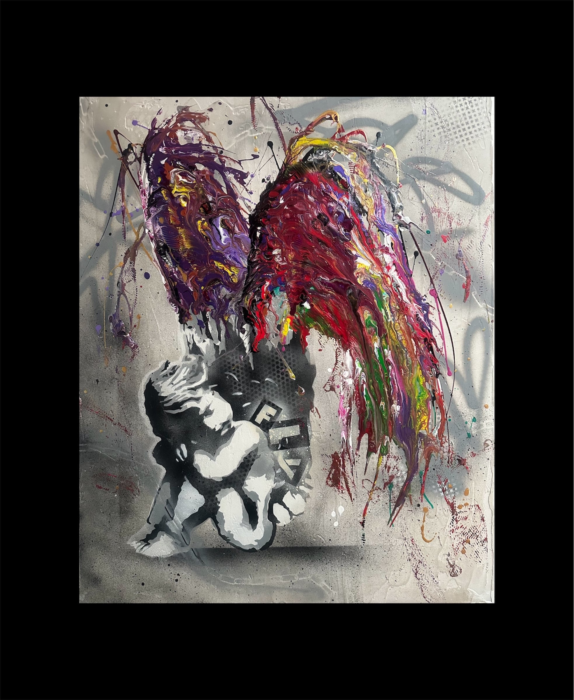 Woodpanel. acrylic. spray. marker. modellingpaste